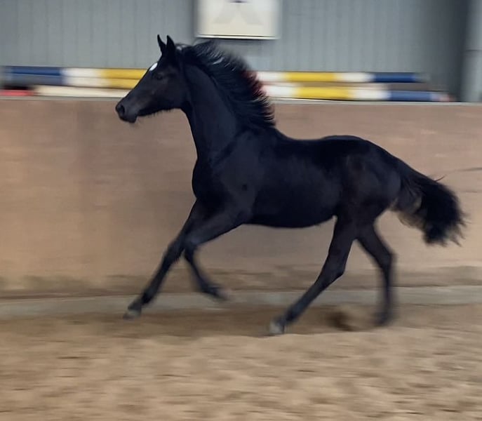 Presentazione di Chante': Sono nata a Fischerhude, un villaggio di artisti. Essendo stata scelta come compagna di scuderia, ho potuto trasferirmi come cavalla da monta sulla riva del Weser, presso il maneggio Buchenhof. Qui ho conosciuto la mia amica e ho trascorso momenti meravigliosi sulle vaste praterie della palude lungo il Weser, dove sono cresciuta splendidamente. Ora però è arrivato il momento di imparare qualcosa di nuovo. Sono nata a maggio e, sì, ho appena tre anni, quindi il mio addestramento sta iniziando ora. Attualmente sto imparando a camminare dolcemente in circolo con la longe, a portare la sella e il bavero. Se posso rimanere qui, anche se dovessi essere venduta, mi piacerebbe passare l’estate al pascolo fino a ottobre. A quel punto sarò già iniziata alla monta e potrò continuare a essere montata nel mio nuovo ambiente. Sarebbe fantastico per me. È anche possibile che io parta già da ora, se così si desidera. Proprio ieri il veterinario è venuto a controllarmi: tutto perfetto! Mi hanno fatto le radiografie, anche di collo e schiena – tutto impeccabile, senza alcun problema. Ora sono ben preparata e cerco una bella casa dove poter iniziare il mio percorso come cavallo da dressage. Il mio passo è valutato come un 12, ma anche trotto e galoppo sono già pronti per le competizioni di livello superiore 💪🥇. Sto ancora crescendo e penso di raggiungere circa 170 cm di altezza. La mia struttura è elegante, ben proporzionata, con lunghe gambe. Sono una femmina castrata, ho ottimi zoccoli. Inoltre, sono molto socievole con gli altri cavalli e naturalmente molto bella 🌸🩷. Chi desidera visitarmi è il benvenuto. Chiamatemi pure al 01736782519.