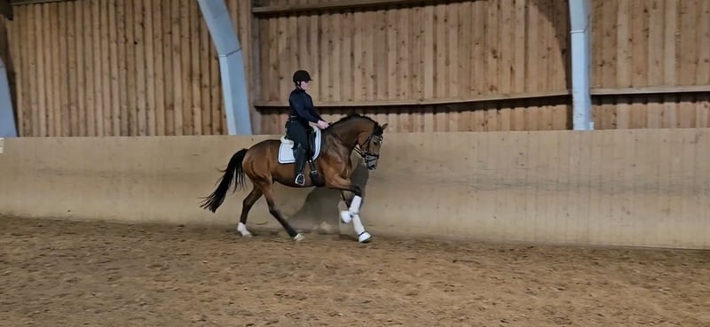 Santa-Luzia ist eine schicke und besonders leichtrittige 3 jähr. Dressurstute. Diese charmante Stute überzeugt mit drei guten Grundgangarten und ist stets brav unterm Sattel. Sie zeigt sich lernwillig und ist auch im täglichen Umgang eine super liebe Sportskameradin. Mit einer Größe von 1,68m ein ideales Damen- u. Umsteigerpferd. Sie ist schmiede- u. verladefromm, herdenverträglich. Top TÜV vorhanden. Standort: 27432 Basdahl Nähere Informationen und Termin zum ausprobieren bitte direkt per Anruf unter: 01520/3178971