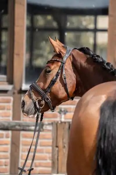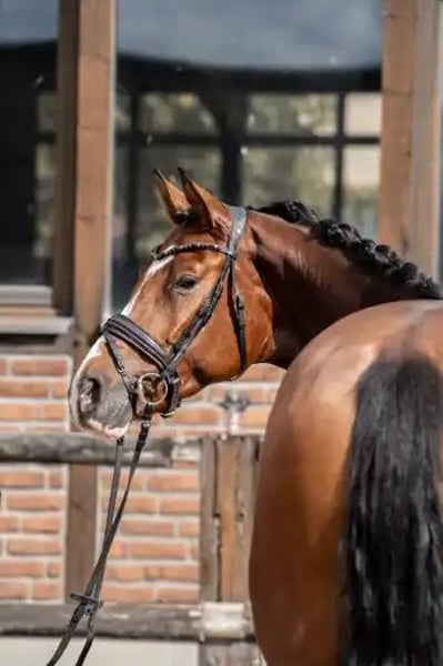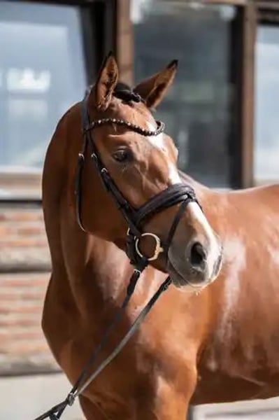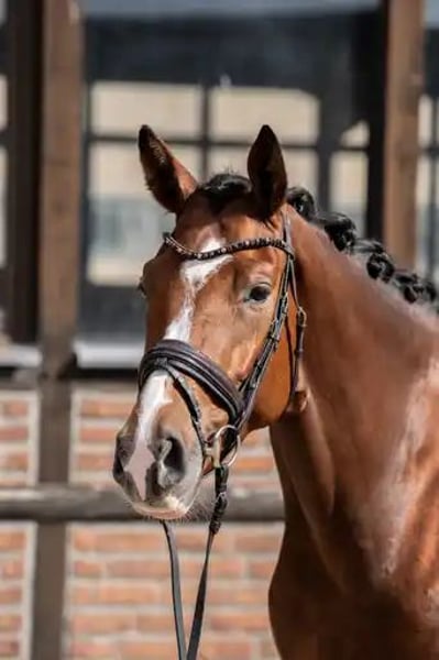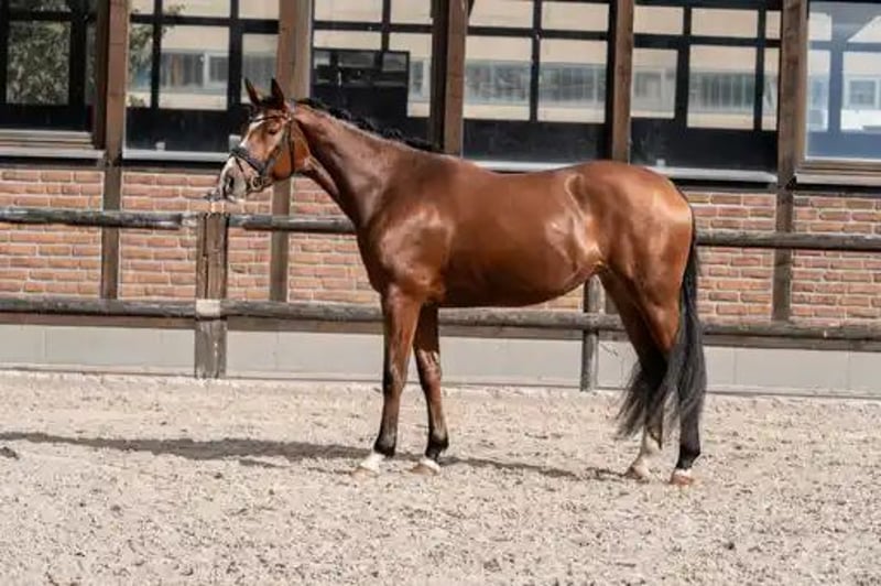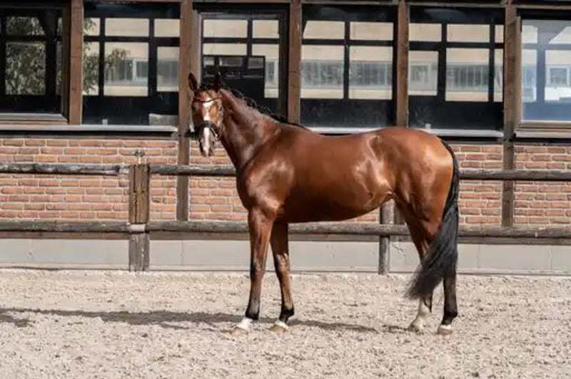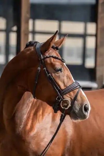 Bildschöne Dressurstute mit besonderer Optik von Franco Nero aus einer Lauris Crusador xx Mutter. Sie verfügt über 3 sehr gute Grundgangarten. Einen schwungvollen im Hinterbein sehr aktiven Trab , der Galopp immer bergauf mit schon guter Balance und selbsthaltung und einem immer geregelten und raumgreifenden Schritt. Für ihr Alter schon sehr abgeklärt und immer brav . Sie begeistert mit ihrer hohen Rittigkeit und herausragenden Einstellung. Immer bestens gelaunt, erfreut diese Stute jeden Tag aufs Neue! Noch in der Entwicklung stehend, aber reift hier eine besondere Dressurperle heran.