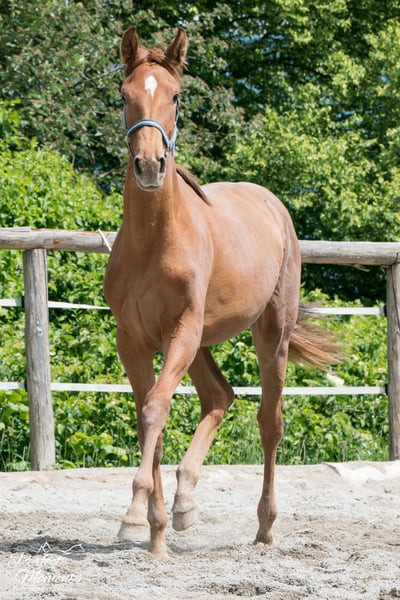 Stunning Hanoverian mare (bred from Vitalis x August der Dritte) that impresses not only with her appearance but especially with her gentle, sweet temperament. Details: Age: 3 years Height: approximately 170 cm Training status: currently unbroken – gently introduced to saddle, longe, etc. Temperament & Character: She consistently shows her best qualities in daily handling: always clear-headed, honest, eager to learn, and fearless. Conformation & Movement: Typical of Hanoverians, she has three very correct basic gaits, with particular emphasis on her expressive trot and spacious walk. She possesses the attitude and talent for high-level dressage. Condition & Additional Information: Farrier-friendly, herd-compatible, and uncomplicated in stable life. Current veterinary certificate available. We are looking for a caring new home where she can continue to develop and thrive. If interested, I look forward to hearing from you via message or phone call.