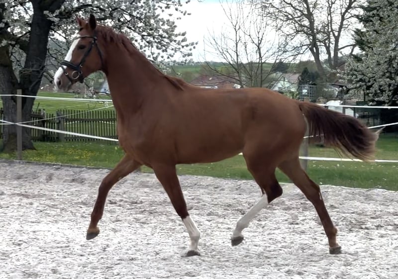 Bezpośrednio od hodowcy, z pierwszej ręki – aktualnie w naszej przygotowalni do jazdy. Młoda klaczka z dużymi partiami, długonoga, poprawna, z trzema bardzo dobrymi gniazdami, oferuje wszystko, aby stać się obiecującym koniem do jazdy i ujeżdżenia. Wyjątkowy charakter, przywiązana, chętna do pracy, odważna. Również interesująca z punktu widzenia przyszłej hodowli. Matka StPrSt, pierwsza klasa dekorowana na wystawie Herwart v.d. Decken, sama odnosząca sukcesy w hodowli. Babcia StPrSt, reserve w konkursach ujeżdżenia. Trzecia matka (Londonderry) wyprodukowała konia S* i 4*S – międzynarodowa klacz Grand Prix, m.in. z tego pokolenia.
