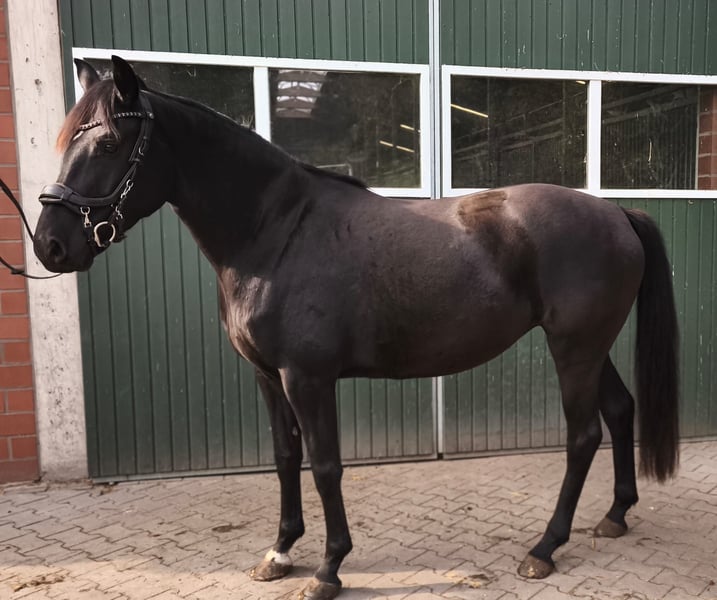 Schwarze Schönheit direkt vom Züchter wegen Bestandsverkleinerung abzugeben. Aufgrund Zeit- und Reitermangel geben wir die 4- jährige Stute roh ab. Sie kennt das Longieren, die Trense und den Sattel. Im Umgang ein absoluter Schatz, schmusig und anhänglich. AKU liegt vor. Ein Chip hinten links ist vorhanden, der unbedenklich liegt. Ansonsten sind die Bilder unauffällig. Eine Besichtigung ist nach Terminabsprache möglich 01712608680