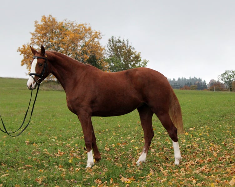 Directly from our successful breeding and foal development program. We are offering a very elegant Hanoverian mare – perfect for ambitious show jumpers! Born in 2021, this beautiful chestnut mare has been raised on our farm and impresses with her appealing appearance as well as her versatile talent. She is people-oriented, diligent, eager to learn, and already shows considerable talent in jumping. Thanks to her excellent pedigree and friendly nature, she is suitable for both experienced riders and ambitious young riders. Please feel free to contact me for more information or to arrange a viewing. A true gem for those who enjoy riding and daily handling with enthusiasm.