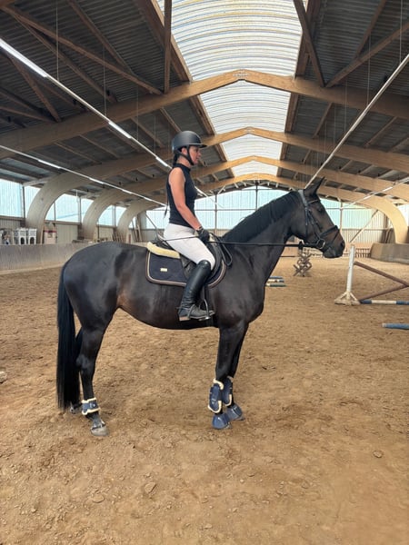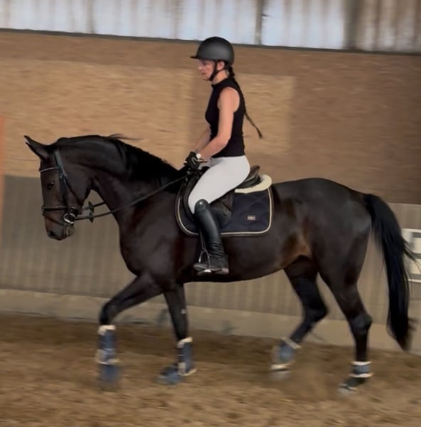 For sale is a promising Hanoverian mare, born in April 2021, with a current height of approximately 1.63 m. She is dark brown, healthy, regularly vaccinated, dewormed, and her teeth have been freshly done. She comes from top-class show jumping lineage: Her sire is HighLevel, a modern, sport-oriented stallion with great performance potential. The dam's sire, Converter, a son of the legendary Contender, additionally brings excellent genetics for show jumping. The mare has been gently backed for about a year and shows herself to be brave, clear-headed, and eager to learn under saddle. She is secure in the basic gaits and impresses in jumping with great overview, ability, and genuine joy in the task – a young horse that is already showing her talent and will continue to flourish in nurturing hands. She is well-behaved with the farrier and veterinarian. While grooming and in similar everyday situations, she occasionally shows her typical young mare charm, but is always manageable and honest. An ideal horse for riders who have experience and enjoy consistently and lovingly developing a young show jumping talent with excellent lineage and a sporting future. Therefore, she will not be sold to re-entrants and/or very young riders.
