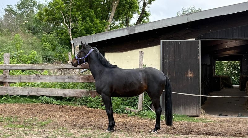 Zum Verkauf steht eine vielversprechende Hannoveraner Stute, geboren im April 2021, mit einem aktuellen Stockmaß von ca. 1,63 m. Sie ist schwarzbraun, gesund, regelmäßig geimpft, entwurmt und die Zähne wurden frisch gemacht. Sie stammt aus erstklassiger Springabstammung: Der Vater ist HighLevel, ein moderner, sportlich geprägter Hengst mit großem Leistungspotenzial. Der Muttervater Converter, ein Sohn des legendären Contender, bringt zusätzlich beste Genetik für den Springsport mit. Die Stute ist seit ca. einem Jahr schonend unter dem Sattel und zeigt sich dort mutig, klar im Kopf und lernwillig. In den Grundgangarten ist sie sicher, und im Springen überzeugt sie mit viel Übersicht, Vermögen und echter Freude an der Aufgabe – ein Nachwuchspferd, das jetzt bereits ihr Talent erkennen lässt und in fördernden Händen noch weiter aufblühen wird. Sie brav bei Schmied und Tierarzt. Beim Putzen und in ähnlichen Alltagssituationen zeigt sie hin und wieder ihren typischen Jungstuten-Charme ,dabei aber immer händelbar und ehrlich. Ein ideales Pferd für Reiter, die Erfahrung mitbringen und Freude daran haben, ein junges Springtalent mit exzellenter Abstammung und sportlicher Zukunft konsequent und liebevoll zu fördern. Daher wird sie nicht an Wiedereinsteiger und / oder sehr junge Reiter verkauft.