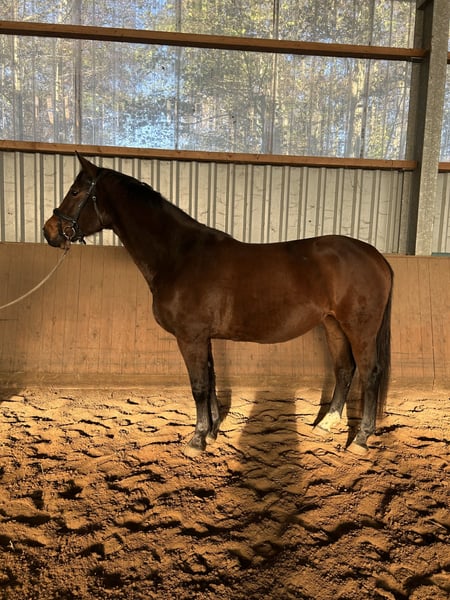 Zu verkaufen steht eine hübsche jetzt vierjährige Stute von Diamant de Casall x Captain Jack x Sandro Boy. Winter 2024/2025 schonend angeritten, hat sie schon erste Erfahrungen unter dem Reiter in der Reithalle, auf dem Reitplatz und im Gelände gesammelt. Altersentsprechend war sie den Sommer über auf der Wiese. 18 Röntgenbilder liegen aus dem Sommer 2025 ohne Befund vor. Aktuell für kleines Geld auf Grund Platzmangel und Zeitmangel abzugeben. Stute ist zum selbst ausbilden, aber nicht anfängertauglich,