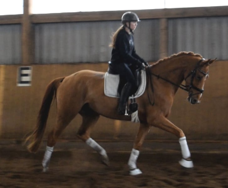 Eine athletisch aufgemachte Stute, die auf den ersten Blick zu überzeugen weiß . Sie verfügt über eine sehr gute Galoppade , raumgreifenden Schritt und eine sehr elastische Trabphase. Top rittig, immer an der Seite seines Reiters. Sie ist sehr nervenstark und sehr einfach zu reiten, deshalb auch für Kinder und Wiedereinsteiger bestens geeignet. Mehr Infos finden Sie auf unserer Homepage. Probereiten jederzeit nach Absprache möglich.