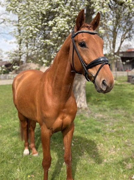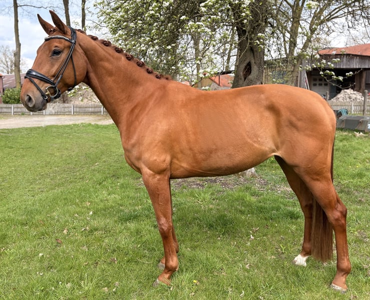 Alter: 4 Jahre Abstammung: Vivaldos x Scolari Stockmaß: 167cm AKU: Gute Röntgenbilder inkl. Rücken von Oktober ’25 vorhanden - OHNE BEFUND Vienna überzeugt mit drei sehr guten Grundgangarten und ihrer positiven Arbeitseinstellung. Besonders hervorzuheben ist ihr überdurchschnittlich guter Schritt und ihre schwungvolle Trabmechanik. Sie zeigt sich äußerst rittig, sehr angenehm im Kontakt und ist dabei mit dem richtigen Maß an Go und Arbeitseifer ausgestattet. Sie wurde sehr schonend im November 2025 angeritten und hat seitdem in kürzester Zeit tolle Fortschritte gemacht. Aufgrund des jungen Alters ist die erste Turniersaison erst für dieses Jahr geplant. Bei Interesse gerne PN.