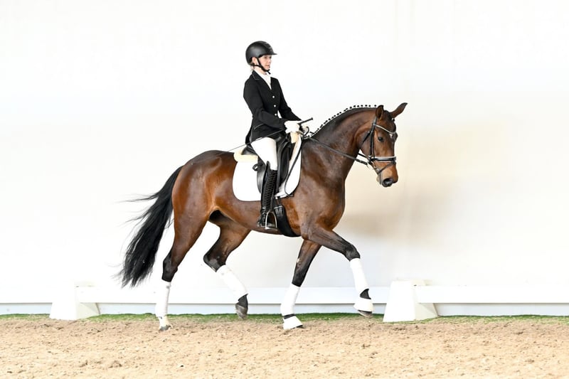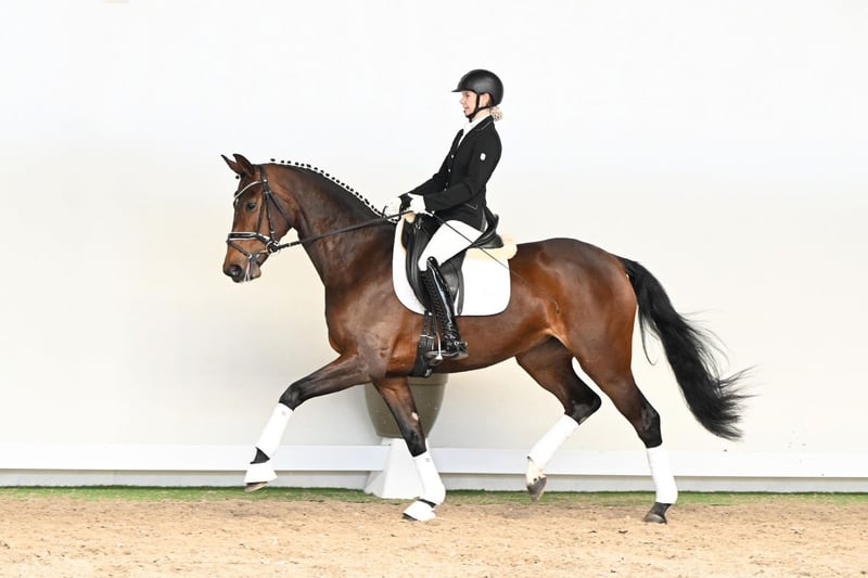 La Daisy, a four-year-old mare with an ideal frame, leaves nothing to be desired. Equipped with three outstanding basic gaits, she moves with elasticity through her entire body and impresses with natural impulsion, expression, and a clearly uphill tendency—exactly what one looks for in a modern dressage horse. For the future rider, this is a horse destined for higher levels. La Daisy possesses all the attributes required for a successful career in advanced sport, presenting herself with brilliance, charm, and a presence that captivates from the very first moment. Beyond her movement, it is especially her attitude that stands out: friendly, positive, and always focused on her rider. She is a horse that wants to work, thinks along, and gives her rider a feeling of confidence, harmony, and ease from the very beginning. Her pedigree is equally compelling: her sire La Vie represents international success, modern type, and exceptional willingness to perform. Through her damsire Desiderius L, she carries proven De Niro–Donnerhall blood, further reinforced by Donnerball as her granddam’s sire—a direct son of the legendary Donnerhall. This double genetic reinforcement of Donnerhall is no coincidence, but a true mark of quality. For decades, this line has stood for rideability, collection ability, and a natural talent for the highest levels of dressage—traits that La Daisy already demonstrates today, making her an exceptionally interesting prospect for ambitious riders. La Daisy combines everything one could wish for in a future top horse: quality of movement, strength of character, and an outstanding genetic foundation—a horse that not only impresses, but truly offers perspective.