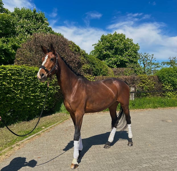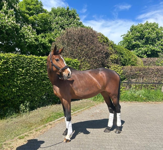 We are selling our 4-year-old mare by Zoom x Ehrentusch from our own breeding. She has been raised with us in a species-appropriate herd environment with daily turnout among mares. She is already lunged, but has not yet been ridden. Due to a lack of time, we would like to sell her into good and supportive hands for further training. If you are interested, please feel free to contact us.