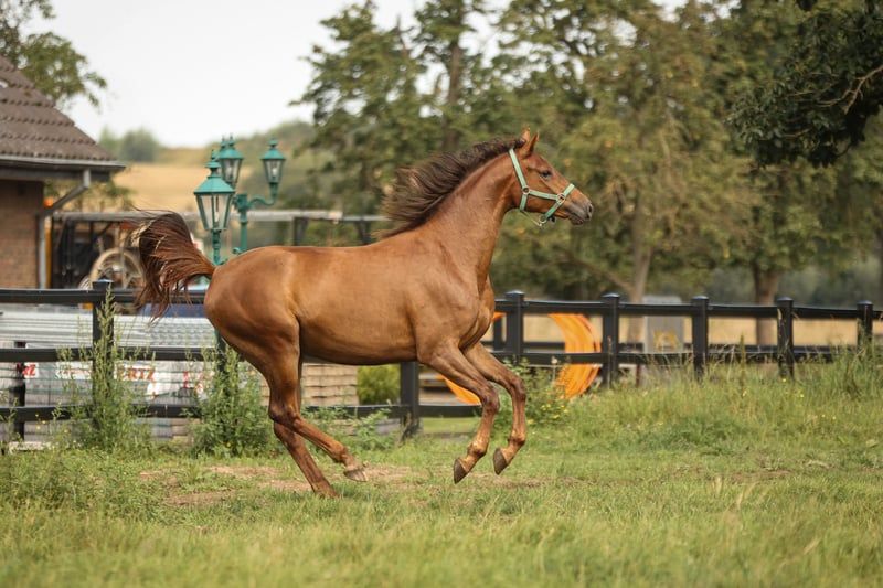 Bellissima cavalla castagna scura K.C. Can Fly di Conthargos da K.C. Diana, cavalla da salto. Taglia finale prevista 170. Nata il 20.03.22. Premio oro. K.C. Can Fly è un trasferimento embrionale, quindi la cavalla nelle foto non è la madre. La madre Diana è inserita nel salto M e attualmente si sta allenando per il salto di 150 cm. K.C. Can Fly è stato il campione dei puledri da salto ai campionati puledri di Wickrath. Il verdetto della giuria: "Non potrebbe essere più bella e più brava". Anche la sorella piena Carrera (cavalla nera) ha ricevuto il premio d'oro alla fiera dei puledri di Wickrath il 9 agosto (entrambe le cavalle sono state trasferite in embrione).