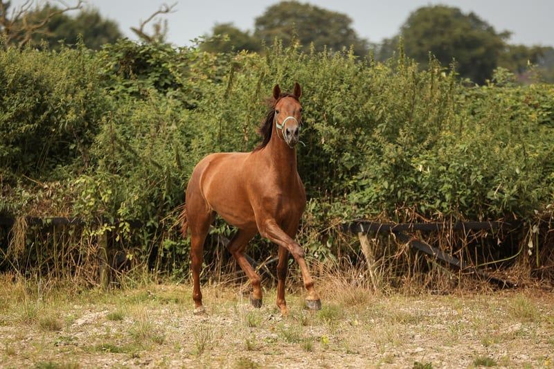 3 jährige springgewaltige Stute IA Prämie Staatsprämienanwärterin (als Fohlen Fohlenchampionesse/Goldprämie) Bildschöne Dunkelfuchsstute K.C. Can Fly von Conthargos aus der Springleistungsstute K.C. Diana. Voraussichtliches Endmass 170. Geb. 20.03.22. K.C. Can Fly ist ein Embryotransfer, sodaß die Stute auf dem Fotos nicht die Mutter ist. Die Mutter Diana ist im Springen M platziert und derzeit im Training fuer 150 cm springen. K.C. can Fly war auf dem Fohlenchampionat in Wickrath die Championesse der springbetonten Fohlen. Urteil der Jury: "Schöner und besser geht nicht mehr." Ihre Vollschwester Carrera (Rappstute) hat am 9.8. auf der Fohlenschau in Wickrath ebenfalls die Goldprämie erhalten (beide Stuten sind Embryotransfers). Anläßlich der Stutenleistungsprüfung inWickrath erhielt sie die IA Prämie mit Staatsprämienanwartschaft. CanFly kann nun auf die Turniersaison 2026 vorbereitet werden.