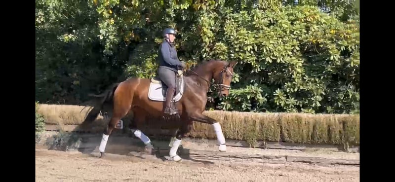 Sophie kommt direkt vom Züchter und befindet sich seid März bei uns in Ausbildung. Sie ist ideal für den Dressursport geeignet und überzeugt durch ihre Bewegungsqualität sowie ihre Lernbereitschaft. Sie ist unkompliziert im Umgang, so wie beim reiten. Hier befindet sie sich auf dem Weg in die Klasse L. Noch nicht öffentlich vorgestellt! Auch ist Sophie Interessant für die Zucht - aus dem Mutterstamm kommt z.B. der gekörte Hengst Don Henrico (PSG/ Inter I), Damien Dark (PSG/ Inter II) und Al Crusador. Ein Züchter-TÜV vom letzten Jahr liegt vor. Bei Interesse gerne Kontakt über WhatsApp oder Telefonisch 0178 7754715.
