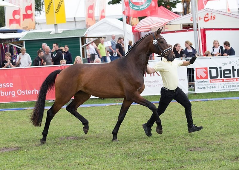 Sophia überzeugt durch ihr wunderschönes Aussehen und ihren hervorragenden Gangarten. Sie ist lieb im Umgang, braucht aber einen erfahrenen Reiter der ihr Sicherheit geben kann. Sophia hat das Potential für den großen Dressursport.