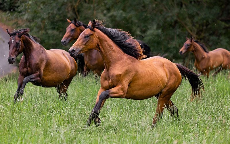 Cinque Stelle S da Freigeist a. d. Londontimes Lola S v. Londontime Cavalla Hannoverana | Baia | Nata il 15.06.2022 Qui il nome è un programma. Questo bellissimo e vivace puledra porta con sé una qualità di movimento eccezionale. Leggera, con molta energia, mostra una grande dinamica di movimento con una eccellente tendenza a salire. Con molta spinta da dietro, fluttua sul campo. Ha molta energia e si diverte a muoversi. Tutti e tre i passi fondamentali sono di qualità straordinaria. Non solo si muove magnificamente, ma è anche assolutamente lucida e ha già imparato molto. Portarla al pascolo o fare una passeggiata funziona con lei a un anno meglio che con molti puledri di tre anni. Il maniscalco lavora i suoi zoccoli con naturalezza con il flessibile. Somministrazione di medicinali, vaccinazioni, cura e assistenza fisica - tutto senza problemi. Questo puledra tipica è intelligente, sicura di sé e affettuosa verso le persone. È cresciuta da noi in azienda. I cavalli sono in branco durante l'estate 24/7 al pascolo e in inverno in un'adeguata gestione di gruppo. Gestiamo una piccola allevamento. Tutti i cavalli hanno un legame familiare, sono affettuosi verso le persone e vengono allevati e addestrati con molta conoscenza e cuore. I puledri vengono svezzati in modo delicato e attento, l'educazione e l'addestramento avvengono con la consapevolezza del comportamento equino e dell'apprendimento, con tanto amore e il minor stress possibile. Lo sviluppo della salute viene monitorato fin dall'inizio e costantemente con un occhio vigile, per poter correggere eventualmente in anticipo. Un'alimentazione adeguata, sverminazione regolare e vaccinazioni sono per noi una cosa normale. Il padre Freigeist (da Foundation) appartiene al lotto di stalloni giovani del Landgestüt della Bassa Sassonia ed è stato recentemente premiato con il premio Weltmeyer. Ulteriori informazioni sull'allevamento e la crescita possono essere trovate sul nostro sito web schroetershof.de o contattateci telefonicamente.