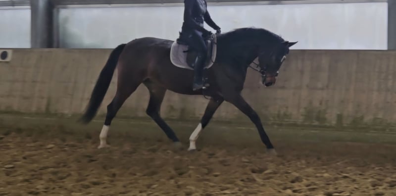 Siena is a Hannoverian mare currently standing at 16.1 hh with excellent breeding. She will turn four on January 31, 2026. Siena is an exceptional horse in terms of quality. She has an outstanding conformation and temperament, with above-average gaits. She is a promising prospect for the larger dressage arena. This year, Siena has been gently backed and is now ready for further training. She comes directly from the breeder. Overall, Siena is very uncomplicated and easy to handle. For more information, please contact us at: 0177/2721831. Price on request.