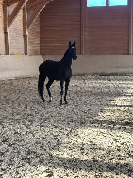 Characterful, large-framed dressage mare by MaracanaxDe Niro with excellent pedigree for competitive dressage. Well-behaved and attentive, equipped with three good basic gaits. A promising young horse for the dressage sport.