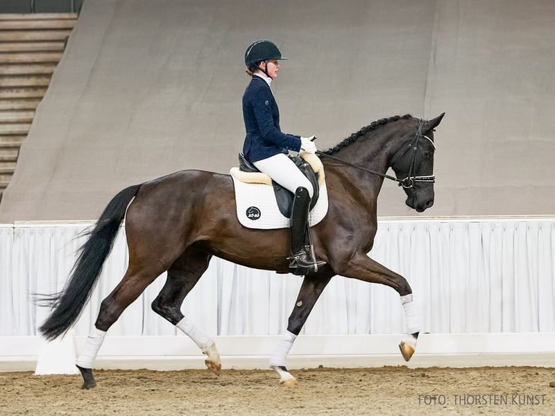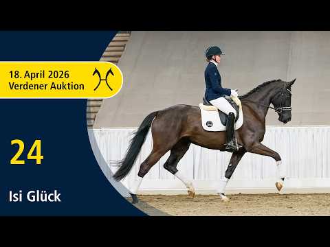 Das Pferd ist ein Verdener Auktionspferd und wird am 18.04.2026 onlive versteigert. Vom 6.04. bis zum 18.04. kann das Pferd jeden Tag beim öffentlichen Training besichtigt und ausprobiert werden. Das Startgebot bei der Versteigerung ist 8.000 Euro. Isi Glück ist ein schwungvolles, ausdrucksstarkes Dressurpferd, das sich stets auffallend in Szene setzt. Sie lässt sich hervorragend formen und empfiehlt sich besonders für ambitionierte Amazonen oder Junioren. 2025 wurde sie bei der Stutenschau in Bruchhausen-Vilsen mit dem 1a-Preis ausgezeichnet und nahm erfolgreich an der Herwart von der Decken-Schau teil. Mit der hannoverschen Prämienanwartschaft dekoriert, verweist sie auf ihre Halbschwester Charlotte v. Compliment, die mit Julie Brinkmann in S-Dressuren erfolgreich ist. Angeführt wird der Mutterstamm von Sambucca S (int. S** mit Hayley Beresford) sowie dem gekörten Hengst Feinblick (S-Dressur mit Johannes Seidl). Zuchtprämie: 1xIa. Zuchtname: Isi Glück Prämie: HannPrA 1. Generation Sportpferde Dressur: HannPrA Charlotte/Charlotte 235 v. Compliment (DRE: S* mit Lilly Marleen Lesniak). Aufbauprüfungen Dressur: HannPr Carry/Carrie Bradshaw 5 v. Compliment (DRE: L). Bes. Prämientöchter: HannPr Vivica v. Valverde; HannPrA Vincenca v. Valverde (Herwart von der Decken-Schau Verden 2022). 2. Generation Sportpferde Dressur: Frisby 41 v. Fürstenball (DRE: M* mit Annalisa Baum); Favourite Ferrero v. Fürsten-Look (DRE: M* mit Ricarda Kube). 3. Generation Sportpferde Dressur: Sambucca S v. Scolari (DRE: int. S** mit Hayley Beresford); Nashville 85 v. Negro (DRE: M** mit Dominik Samter); Cascada/Cascada 67 v. Catoki (DRE: M* mit Selina Buck). Aufbauprüfungen Dressur: Flaconi M v. Fürstenball (DRE: L); Bjössa/Bjössa 3 v. Bonifatius (DRE: L); Doctor 3 v. Don Gregory (DRE: L). Aufbauprüfungen Springen: Lady Waikiki v. Lefevre (SPR: L). Auktionspferde: Spirit v. Spörcken (FoVA 2013). 4. Generation Sportpferde Dressur: Doktor Faustus v. Dream of Heidelberg II (DRE: S* mit Victoria Suppert); gek. Hengst Feinblick v. Feingau (DRE: S mit Seidl,Johannes Dr.,Championat für Reitpferde m.M. 1987,Oldenburg 1986). Sportpferde Springen: El Escudero v. Eskardo (SPR: 1,40 m mit Philipp Mester); Leandro 190 v. Lavaletto (SPR: 1,30 m mit Sven Sieger); Lady-Liberty/Lady Liberty 26 v. Lavarino (SPR: 1,30 m mit Tobias Mayer). Aufbauprüfungen Dressur: Mille Baci v. Millennium (DRE: L). Aufbauprüfungen Springen: APRIL MORNING 2 v. Argentano (SPR: L). gekörte Hengste: gek. Hengst Dancing Sir Gold/DoubleOSeven v. De Niro Gold (Vechta 2020). Auktionspferde: Dibadu v. Destano (VA 2018). Bes. Prämientöchter: StPr Johella v. Weltmeister. 5. Generation Aufbauprüfungen Dressur: Sellec v. Sir Donnerhall I (DRE: L). Mutter: Daphne ZL: 12/7 Großmutter: Jolaika ZL: 10/8