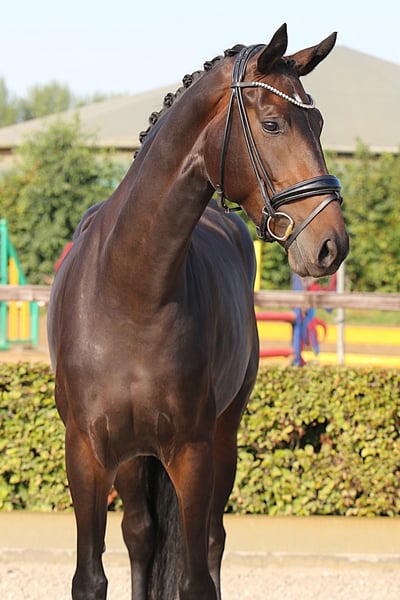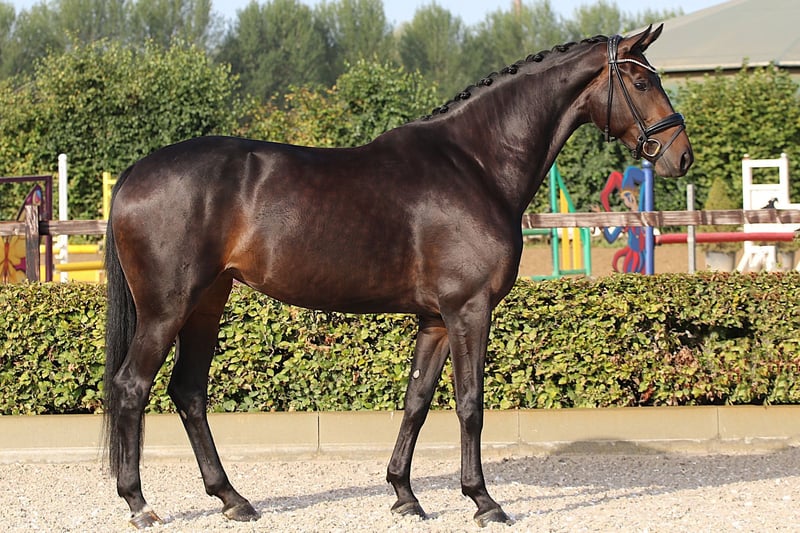 Deze prachtige zwartbruine Hannoveraanse merrie werd geboren in 2021 en valt op door haar elegante verschijning en nobele uitstraling. Met een stokmaat van 1,71 m is ze de perfecte maat voor ambitieuze ruiters die hun dressuurcarrière willen stimuleren. Ze beschikt over een degelijke basisopleiding in de dressuur en toont al veel talent en een aangename leergierigheid. Haar evenwichtige aard maakt haar tot een betrouwbare partner in de dagelijkse training en op wedstrijden. Bij interesse hoor ik graag van u om meer informatie te geven en een bezichtigingsafspraak te maken.
