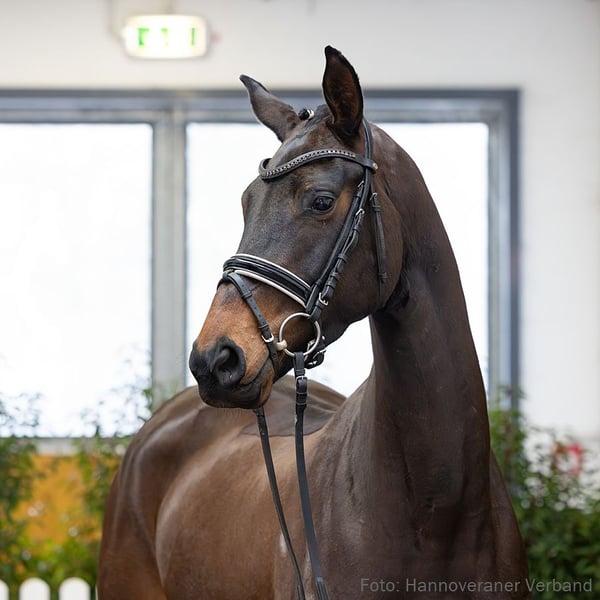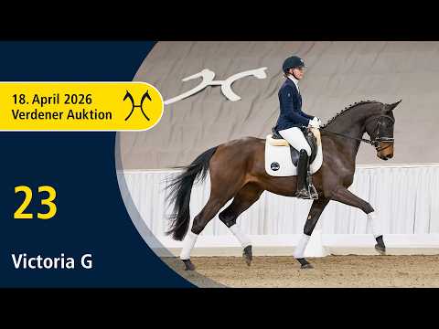 Das Pferd ist ein Verdener Auktionspferd und wird am 18.04.2026 onlive versteigert. Vom 6.04. bis zum 18.04. kann das Pferd jeden Tag beim öffentlichen Training besichtigt und ausprobiert werden. Das Startgebot bei der Versteigerung ist 8.000 Euro. Extravaganter Dressurnachwuchs der absoluten Spitzennorm. Bewegungseleganz, Reiteigenschaften und Habitus von Victoria G sprechen für sich. Victoria G ist charmant im Auftritt, bewegungsveranlagt und mit vortrefflicher Rittigkeit ausgestattet. Ohne Frage eine Dressurspitze. Ia-prämierte Dressurstute, die ihre Zuchtstutenprüfung erfolgreich mit der Wertnote 8,0 für den Trab und vom Fremdreiter ablegte. Ihr Halbbruder Ivone v. Ivanhoe/T. ist mit Karina Zimmermann-Rothermel erfolgreich in M-Dressuren. Das Pferd wird abweichend von den Auktionsbedingungen ohne Versicherungsschutz verkauft. Bitte erkundigen Sie sich bei der Auktionstierärztin. Zuchtprämie: 1xIa. Leistungsprüfung: Feldprüfung Reitpferd - Trab 8,00 Galopp 7,50 Schritt 7,00 / Durchschnitt Rittigkeit 7,75 / Durchschnitt Springen 0,00 Zuchtname: Victoria Prämie: HannPrA 1. Generation Sportpferde Dressur: Ivone v. Ivanhoe (DRE: M* mit Karina Zimmermann-Rothermel). Auktionspferde: Ideal 56 v. Asgard's Ibiza (FoVA 2020); Ibiza Sun v. Asgard's Ibiza (FoVA 2019). 3. Generation Besondere Sportergebnisse: Dark Legend v. Duino (Bundeschampionat f. Reitpferde 2011,Championat f. Reitpferde 2011). 4. Generation Sportpferde Voltigieren: Sun Valley 3 v. Sunny-Boy (Voltigieren: S** mit VG Team Timeloh-Hof,Deutsche Meisterschaft Doppelvoltigieren 2023,Deutsche Meisterschaft Einzelvoltigieren Junioren der Damen 2021,Deutsche Meisterschaft Einzelvoltigieren Junioren der Damen 2021). Aufbauprüfungen Springen: Quatschi HS v. Quite Rubin (SPR: L). Bes. Prämientöchter: StPr Wanja v. Wanderbursch II. 5. Generation Sportpferde Springen: Romanze/Veritas Romanze v. Rohdiamant (SPR: M mit Gintzburg,Ilka). Sportpferde Fahren: Lester 177 v. Lavauzelle (Fahren: int. S mit Theo Timmerman,Nationenpreis Fahren -Vierspänner- -international- 2006,Deutsches Fahrderby 2005). Mutter: Desiree ZL: 12/10 Großmutter: Ramina ZL: 2/2 ZSP: Feldprüfung Reitpferd - Trab 6,50 Galopp 7,00 Schritt 6,50 / Durchschnitt Rittigkeit 7,50 / Durchschnitt Springen 5,75