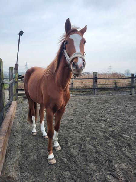 Ich muss mich leider aus zeitlichen Gründen von meiner geliebten Hannoveraner Stute im April 4 Jahre alt und aktuell ca 174cm große Bellatrixi trennen. Bellatrixi ist ein absolutes Traumpferd. Mit ihr kann man alles machen. Sie hat ein liebevolles und ruhiges Wesen. Mit ihr kann man problemlos alleine oder auch in der Gruppe spazieren gehen. Auch Bodenarbeit wie longieren mit Sattel und Trense kennt sie und macht sie super brav mit. Dabei hört sie auch auf die Stimme. Auch das laufen lassen ohne Longe macht sie hervorragend mit und läuft um einen herum. Außerdem kennt sie Trecker, Bullen, Hunde und was alles noch so im Straßenverkehr unterwegs ist, dabei ist sie immer lieb und unerschrocken. Bellatrixi überzeugt nicht nur durch ihre liebevolle und zuverlässige Art, auch ihre Gänge sind ein Traum. Sie schwebt gerade zu über den Boden. Durch ihre Abstammung ist sie auch für die Zucht sehr interessant. Benico ist ihr Vater, Quantensprung und Belissiomo sind ihre Großväter. Siehe Bilder. Bellatrixi ist geimpft und entwurmt. Im Mai wurden ihre Zähne gemacht und der Wolfszahn gezogen. Alle 6-7 Wochen ist sie vorstellig beim Hufschmied und dabei auch total brav. Aktuell hat sie Eisen vorne drauf, wegen einer leichten Fehlstellung zum korrigieren. Bald können die Eisen aber ab bleiben. Bei Fragen stehe ich Ihnen gerne zur Verfügung. Ich wünsche mir für Bellatrixi ein 5 Sterne zu Hause wo es ihr auch wirklich gut geht und sie genau wie bei mir mit Liebe behandelt wird.