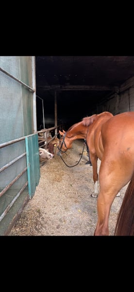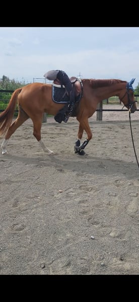 Je suis malheureusement contraint de me séparer de ma chère jument hanovrienne, Bellatrixi, en raison de contraintes de temps. Elle a 4 ans en avril et mesure actuellement environ 1,74 m au garrot. Bellatrixi est un cheval de rêve. Avec elle, tout est possible. Elle a un tempérament doux et calme. Elle peut facilement accompagner seul ou en groupe lors de promenades. Elle connaît également le travail à la longe avec selle et bridon, qu’elle exécute de manière très obéissante. Elle répond également bien à la voix. Elle marche parfaitement en liberté, en cercle ou autour de soi. De plus, elle connaît les tracteurs, les taureaux, les chiens et tout ce qui circule dans la circulation routière, et elle reste toujours gentille et courageuse. Bellatrixi séduit non seulement par sa nature aimante et fiable, mais aussi par ses allures qui semblent flotter. Elle semble presque voler au-dessus du sol. Grâce à ses origines, elle est également très intéressante pour la reproduction. Son père est Benico, et ses grands-pères sont Quantensprung et Belissiomo. Voir photos. Bellatrixi est vaccinée et vermifugée. En mai, ses dents ont été traitées et sa canine a été extraite. Tous les 6-7 semaines, elle voit le maréchal-ferrant, avec qui elle est également très sage. Actuellement, elle porte des fers à l’avant pour corriger une légère déformation, mais ceux-ci pourront bientôt être retirés. Je reste à votre disposition pour toute question. Je souhaite à Bellatrixi une famille qui lui offrira un foyer 5 étoiles, où elle sera vraiment choyée et traitée avec autant d’amour qu’elle l’a été avec moi.