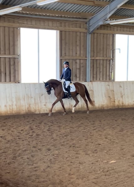 *Felicia* Diese wunderschöne Fuchsstute wurde im Jahr 2021 geboren und überzeugt durch ihr freundliches Wesen sowie ihre beeindruckende Erscheinung. Durch ihre raumgreifenden Grundgangarten und ihren motivierten Charakter bietet sie die perfekten Voraussetzungen für ambitionierte Reiterinnen und Reiter, die ihre Dressurkarriere vorantreiben möchten. Auch als Nachwuchspferd für Jugendliche wäre Felicia geeignet. Sie wird der Zuchtlinie entsprechend im Dressursport ausgebildet und zeigt bereits viel Talent. Ihre angenehme Art macht sie zu einer zuverlässigen Partnerin im täglichen Training und bei Turnieren. Felicia wurde bereits bei der Reitpferdeprüfung platziert. Neben der Eignung als Sportpferd, ist Felicia zudem Interessant für die Zucht. Bei der Stutleistungsprüfung erlangte sie eine Gesamtnote von 8,22 und schenkte uns dieses Jahr ein Stutfohlen von Va Bene. Die Stute ist gesund, regelmäßig geimpft und frei von Krankheiten. Sie ist gut im Umgang und lässt sich problemlos bei Tierarzt, Schmied und Zahnarzt vorstellen. Ein TÜV liegt aktuell nicht vor. Bei Interesse stehe ich gerne für weitere Informationen zur Verfügung. Ein Probereiten ist nach Vereinbarung möglich. Gerne per WhatsApp unter +4915560581906.