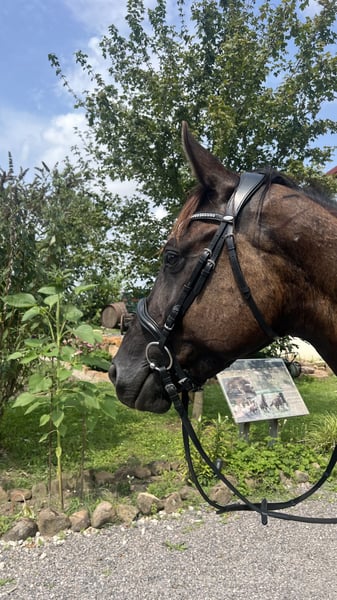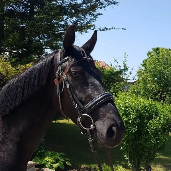 Zum Verkauf steht die 5-jährige Stute Enya, ein feinfühliges und sensibles Pferd mit vielseitigen Anlagen. Enya wurde schonend angeritten Sie wurde altersgerecht gefördert und zeigt sich dabei lernwillig und aufmerksam. Aufgrund persönlicher Umstände wird sie derzeit nicht geritten, ist jedoch ihrem Alter entsprechend vorbereitet und kennt die Grundlagen. Im täglichen Umgang ist Enya schmiede- und verladefromm. Sie kennt das Gelände und geht dort auch alleine zuverlässig. Durch ihre guten Grundgangarten ist sie für die Dressur geeignet, zeigt zudem Talent im Springen und bringt damit beste Voraussetzungen für ein abwechslungsreiches Freizeitreiten mit. Enya ist ein sensibles Pferd, das sich einen ruhigen, fairen Reiter mit Gefühl wünscht. Sie ist daher nicht als Anfängerpferd gedacht, sondern für jemanden, der Freude an feiner Arbeit und Weiterentwicklung hat. Videos auf Anfrage.