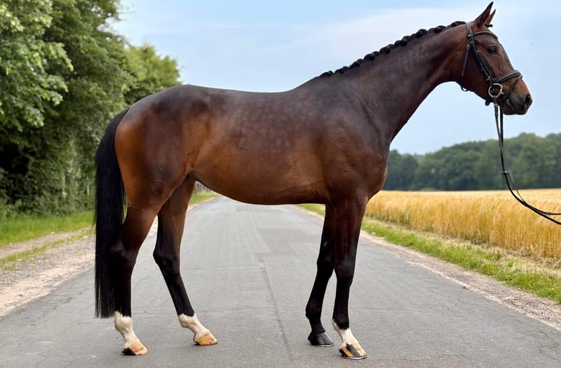 Tolles Ausbildungspferd für den ambitionierten Freizeitreiter. Fancy hat 4 jährig noch viel Zeit bekommen in ihren Körper reinzuwachsen, für ihre 5 Jahre ist sie daher noch recht grün und es fehlt ihr etwas an Kraft, woran aber jeden Tag professionell gearbeitet wird. Sie ist immer sehr motiviert bei der Arbeit und ihr stets aktives Hinterbein sowie der regelmäßige und ruhige Schritt sind sicherlich hervorzuheben. Neue Lektionen lernt sie schnell und auch im Umgang ist sie unkompliziert und sehr verschmust. Trotz ihrer Größe ist sie (noch) kein Kinderpferd, sie braucht einen Reiter der ihr Sicherheit gibt und die Grundlagen weiter festigt. Guter TÜV Röntgenbilder mit Hals und Rücken von Anfang 2024 vorhanden. Bei Interesse stellen wir gerne Videos und weitere Fotos zur Verfügung.