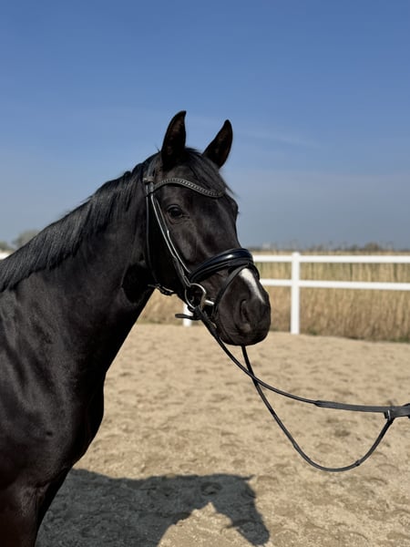 Elegante Hannoveraner Stute – Vielversprechendes Dressurpferd für ambitionierte Reiter Diese anmutige Hannoveraner Stute wurde im Jahr 2021 geboren und besticht durch ihre beeindruckende Erscheinung und ihre vielversprechende Abstammung. Mit ihrem eleganten Rappen-Fell und einer Größe von 163 cm ist sie sowohl optisch als auch in ihrer Konstitution eine echte Bereicherung für jeden Dressurstall. Die Stute ist bereits gut geritten und zeigt ein vielversprechendes Talent für den Dressursport. Sie verfügt über eine harmonische Grundausbildung, ist fein an den hilfen zu reiten und zeigt ein ausgeprägtes Bewegungstalent. Ihr angenehmer Charakter und ihre Bereitschaft, Neues zu lernen, machen sie zu einem idealen Partner für ambitionierte Reiter, die ihre Dressurkarriere weiter ausbauen möchten. Dank ihrer soliden Grundausbildung und ihres vielversprechenden Tempos ist diese Hannoveraner Stute bestens geeignet, um weiter ausgebildet und gefördert zu werden. Sie ist gesund, ein aktueller TÜV aus April 2026 liegt vor. Direkt vom Züchter Bei Interesse freuen wir uns auf Ihre Kontaktaufnahme, um weitere Details zu besprechen und einen persönlichen Eindruck zu vermitteln. Ein Video wird auf Anfrage verschickt.