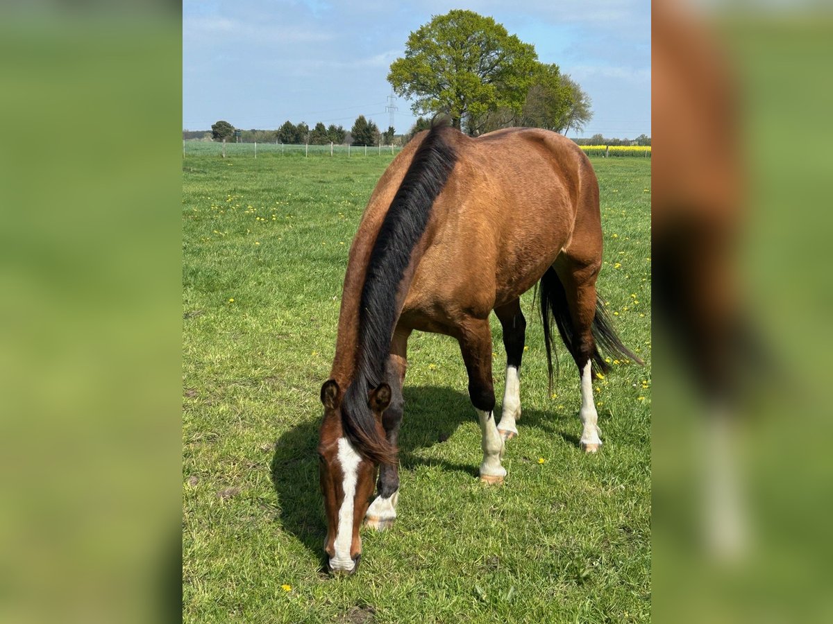 Schön gezeichnete 5j Allroundstute. Flirtini ist bei uns geboren, aufgewachsen und angeritten worden. Jetzt darf sie gerne in ein schönes neues zu Hause mit Jungpferdeerfahrung umziehen. Im November hat sie ihre Stutenleistungsprüfung mit Noten zwischen 7 und 8 absolviert (siehe Zuchtbuchauszug). Aus einem sehr guten Holsteiner Stamm stammend (Stammnummer 1463) eignet sie sich sowohl fürs Springen als auch für die Dressur. Im Gelände waren wir letztes Jahr ebenfalls regelmäßig. Grundsätzlich ist sie brav und gut zu reiten. Aufgrund des Alters ist sie trotzdem nicht für Anfänger geeignet. Sie steht hier im Aktivstall und fühlt sich draußen mit viel Bewegung sehr wohl. Im Alter von 3 Jahren wurde sie geröntgt. Diese Bilder sind ohne Befund. Bei uns war sie bisher kein einziges Mal krank. Wir wünschen uns für sie jemanden, der sie fördert und ihren sehr menschenbezogenen Charakter wertschätzt. Im Umgang ist sie sehr lieb und immer auf ihren Menschen fixiert.