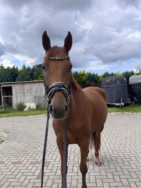 „Viva“ to czteroletnia klacz po Vivaldosie z matki Dancier. Z silnym charakterem i wystarczającą mocą, Viva pokazuje się w pracy zmotywowana i szybko się uczy. Od początku roku jest pod siodłem i pewnie opanowała już lekcje dla koni ujeżdżeniowych klasy A. Mimo młodego wieku, oferuje już pierwsze elementy lekcji klasy L, takie jak galop na zewnątrz, i wykazuje potencjał do wyższych lekcji. Zrobiła już także pierwsze skoki z jeźdźcem, jednak w skokach nie będziemy jej dalej rozwijać z powodu jeźdźca. Pod jeźdźcem Viva jest wrażliwym, ale jednocześnie łatwym w prowadzeniu koniem, który jest spokojnie i poprawnie szkolony i jeżdżony. Mimo wystarczającej chęci do przodu, Viva jest dość zrelaksowanym, nieustraszonym i spokojnym koniem. Jest dobrze wychowana, a w kontaktach z ludźmi jest bezproblemowa i pełna szacunku. Filmik można przesłać na życzenie. W razie dalszych pytań lub zainteresowania prosimy o kontakt telefoniczny lub przez WhatsApp pod numerem 01525 6448041 lub 04163 7706.