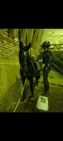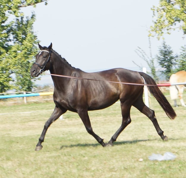 Sympatyczna, towarzyska klacz z nagrodą związkową na sprzedaż, do samodzielnego szkolenia. Klacz jest ze mną od 1,5 roku i została zakupiona do hodowli. Jej pierwsze źrebię zostało od razu nagrodzone i sprzedane za granicę do UE. Zapłodnienie, poród i wychowanie przebiegły bez komplikacji, jednak wiosną tego roku nie została pokryta i dlatego jest na sprzedaż. Przed źrebięciem jeździec już na niej siedział (tylko w stępie na lonży), ale po udanym zapłodnieniu w zeszłym roku nie kontynuowano tego i będzie to wznowione w listopadzie po odsadzeniu źrebięcia, jeśli do tego czasu nie znajdzie nowego właściciela. Kto więc szuka taniego diamentu do samodzielnego oszlifowania, jest tutaj we właściwym miejscu, ponieważ przy odpowiednim szkoleniu cena wzrośnie. Może wyjechać pod koniec listopada. Można przeprowadzić badania weterynaryjne, a transport jest również możliwy do negocjacji. Możliwość wymiany lub przyjęcia w rozliczeniu klaczy sportowej lub kucyka do hodowli, najlepiej z ciążą na 2026 rok. Wysokość poniżej 148 cm lub powyżej 165 cm. W kolorze gniadym lub w kolorze specjalnym, z pełną dokumentacją.