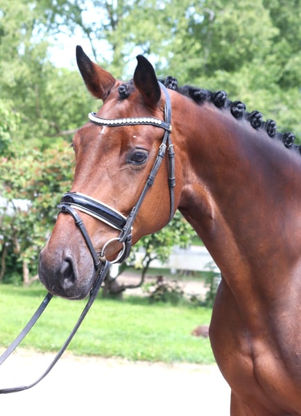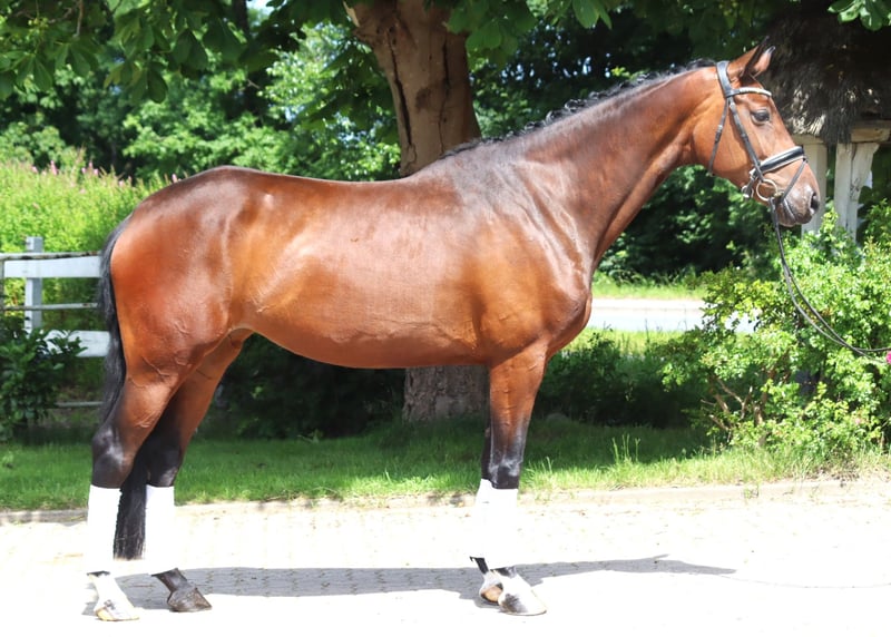 Typowa 4-letnia klacz po Goldberg x Aljetto, z 3 bardzo dobrymi podstawowymi chodami i talentem do skoków. Została osiodłana w zeszłą zimę i spędziła następnie kilka miesięcy na pastwisku, a z powodu braku czasu nie została ponownie wprowadzona do treningu. Wszechstronnie utalentowane koni do samodzielnego szkolenia. Cena plus VAT. Zapytania tylko telefonicznie, e-maile nie będą odpowiadane.