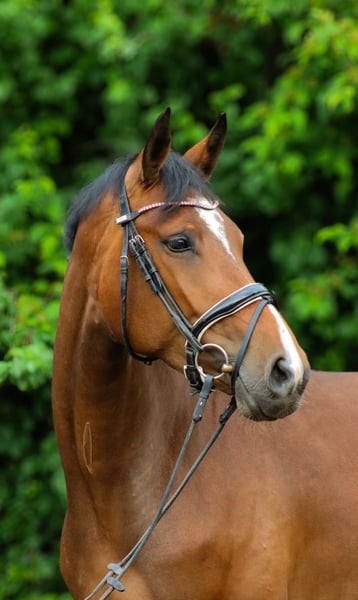 Ooh La La è una promettente cavalla hannoveriana di 4 anni che è arrivata da noi all'età di 1,5 anni ed è ora in fase di addestramento. Nel video la si vede per la prima volta sotto un cavaliere e mostra già un contatto armonioso. È dotata di tre andature di base molto buone, che convincono sia sotto il cavaliere che nel lavoro a terra.