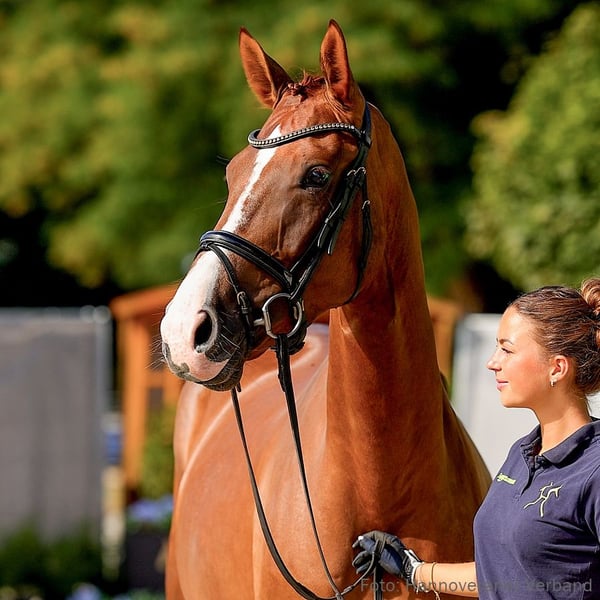 Ansprechend in Typ und Bewegungsqualität präsentiert sich Senza una Donna, die viereckerfahren und souverän auftritt. Sie arbeitet aktiv aus dem Hinterbein und bereitet ihrem Reiter täglich Freude. Mit Joyce-Pauline Gebert war sie bereits erfolgreich in Dressurpferdeprüfungen der Klasse A. Ihre Mutter Weljana konnte sich in Aufbauprüfungen des Dressursports behaupten. Sportname: Senza una Donna 4 Prämie: Vet+ Turniererfolge: RPF: 1/3. DPF: A 1/4. 1/5. 1. Generation Auktionspferde: Diva Princess v. Donier (FoVA 2020). 2. Generation Auktionspferde: Loopy Lastic v. Longchamp (VA 2003). 3. Generation Sportpferde Dressur: HannPrA Blütenzauber/Blütenzauber F v. Beltano (DRE: S* mit Daniel Kronfeldt); Fedon/Fedon 12 v. Fürstenball (DRE: S mit Regine Koch); Figo/Figo 72 v. Fürstenball (DRE: M* mit Isabelle Kettner); Sueno 22 v. Sir Savoy (DRE: M* mit Michelle Muraz); Pilar de Miro v. Prinz Miro (DRE: M mit Sabine Krahwinkel). Sportpferde Springen: Cash Girl 2 v. Cashman (SPR: int. 1,35 m mit Jennifer Maubach); Pampero Miro v. Prikarn Miro (SPR: 1,35 m mit Ingo Butter); Ramiro's Tochter Donna Dolores v. Ramiro's Son II (SPR: M mit Melanie Schindler). Aufbauprüfungen Dressur: Fate of Love v. Fürst Nymphenburg (DRE: M mit Celine Pruß); Pasion Miro v. Prikarn Miro (DRE: M mit Carsten Peeters); Vahid 2 v. Vitalis (DRE: L); Filou 2204 v. For Romance II (DRE: L); VbPr Hofdame/Happy Day 75 v. Hochadel (DRE: L); Del Pierre v. Del Piero (DRE: L). Aufbauprüfungen Springen: Beaucelli v. Baroncelli (SPR: L,FoVA 2004). Auktionspferde: Magic Noir v. Matcho (VA 1991). Bes. Prämientöchter: StPr Floretta v. Fürst Nymphenburg; StPr Summersby/Summersby Fuchs v. Scolari; StPr Pamplona Miro v. Prikarn Miro. Mutter: Weljana ZL: 6/5 Turniererfolge: DRE: L 1/2. 1/4. 1/5. 1/w. DRE: A 1/1. 1/4. 1/5. 1/w. DRE: E 1/w. Großmutter: Davina ZL: 12/8 Das Pferd ist ein Verdener Auktionspferd und wird am 25.01.2026 online versteigert. Vom 12.01. bis zum 25.01. kann das Pferd jeden Tag beim öffentlichen Training besichtigt und ausprobiert werden. Das Startgebot bei der Versteigerung ist 8.000 Euro.