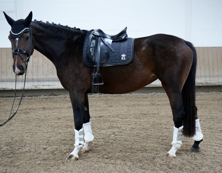 Wir verkaufen unsere 5-jährige wunderschöne braune Hannoveraner Stute von Class de Luxe x Toronto mit einem Stockmaß von 1,70 m. Die Stute wurde behutsam angeritten und wird seitdem mit viel Ruhe und Geduld weiter gefördert. Dabei zeigt sie sich stets brav, nervenstark und lernwillig – eine Partnerin, die ihrem Reiter immer gefallen möchte. Im Umgang ist sie absolut unkompliziert: schmiede- und verladefromm, verträglich mit Stuten wie Wallachen und rundum brav im täglichen Handling. Unter dem Sattel überzeugt sie durch ihre Rittigkeit, ihren klaren Kopf und ihre sehr guten Grundgangarten. Die Stute ist unverbraucht, bringt hervorragendes Potenzial für den weiteren sportlichen Weg mit und eignet sich sowohl für ambitionierte Reiter, die ein junges Pferd für die Zukunft suchen, als auch für Umsteiger und Amateure, die Wert auf einen ehrlichen und zuverlässigen Partner legen. Diese tolle Hannoveraner Stute sucht nun ein passendes Zuhause, in dem sie weiter gefördert wird und ihre Qualitäten zeigen darf. Wir freuen uns auf Ihre Anfrage.