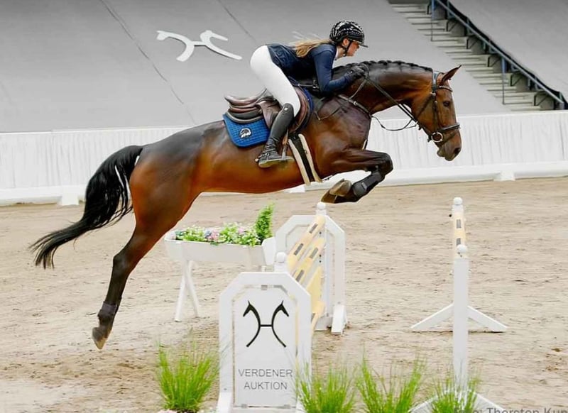 La cavalla nata nel 2020 da Stornley – Carenzo (circa 1,70 m) si distingue per il suo aspetto moderno e armonioso e per il carattere deciso e affidabile. Summersby si presenta sicura di sé, coraggiosa e estremamente affidabile, sia nell'allenamento quotidiano che in gara. È già stata ben piazzata in prove di salto ostacoli di livello A e possiede tutte le qualità per progredire nel mondo sportivo. Grazie alla sua maneggevolezza, equilibrio e natura sincera, è ideale anche per dilettanti o cavalieri ambiziosi che cercano un giovane cavallo motivato e con la testa a posto. La sua versatilità e il desiderio di performance la rendono una vera promessa per il futuro, sia nel salto ostacoli che come cavallo polivalente con prospettive di sviluppo. ✅ Nata nel 2020 ✅ Stalla, circa 1,70 m ✅ Pedigree: Stornley × Carenzo ✅ Posizionata in prove di salto ostacoli di livello A ✅ Coraggiosa, affidabile, sicura di sé ✅ Adatta a dilettanti e giovani cavalieri ✅ Versatile – cavallo con potenziale e prospettive future