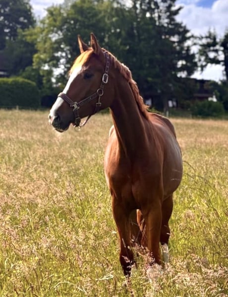 A name that says it all: "Dolce Vita" – this charming chestnut mare embodies pure lightness, joy of life, and rideability. The four-year-old daughter of Don Romance (Dante Weltino OLD × Sir Donnerhall I) out of a St. Pr. mare by Fürst Romancier × San Amour I impresses with her elegant appearance, above-average movement quality, and a particularly pleasant temperament. Known as "Dolci" in the stable, she has been trained with patience and sensitivity. She convinces not only with her natural tendency to move uphill and her active hind leg but also with a remarkable inner calm and eagerness to learn. She already demonstrated her class during her first competitions: with an overall score of 8.6, she won a dressage young horse test 🥇 – an impressive testament to her potential. Standing approximately 1.72 meters at the withers, "Dolce Vita" has everything one could wish for a successful future in dressage: type, talent, and attitude. We are looking for a home for this highly talented State Premium candidate that will support her further development and training on her way into the sport. A mare that excites with her expression, her heart, and her quality – a true future star for the arena. 📍 Location: 49356 Diepholz 📞 +49 151 70006767 Dressage Training Larissa John @larissajohn_dressage