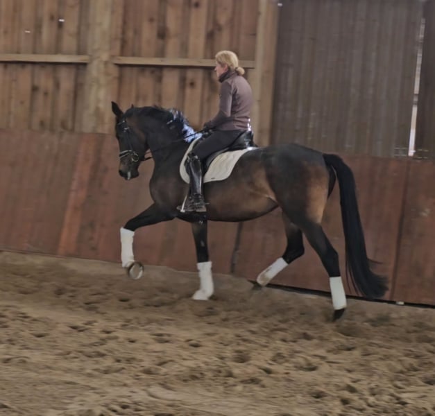 St. Fleur ist eine ganz fein an den Hilfen stehende, fleißige, sehr schön zu sitzende Stute mit guten GGA, sportlicher Einstellung und liebenswertem Charakter. Guter Tüv