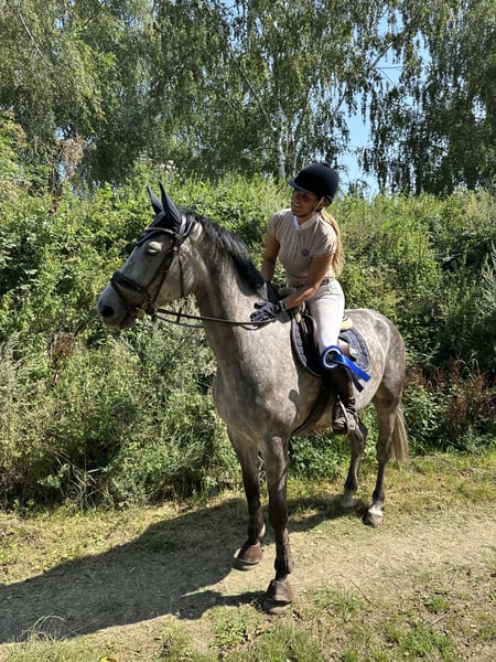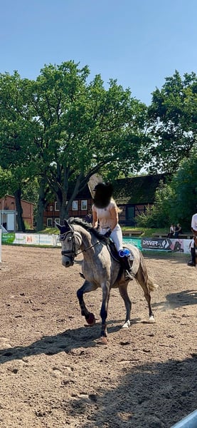 Zum Verkauf steht meine selbstgezogene 5 jährige Hannoveraner-Stute ca.173 cm vom Diacontinus x Lordanos abstammend. Debby ist schonend ausgebildet und überzeugt mit einem sehr klaren Kopf, einem ausgeglichenem Charakter, einer hervorragenden Arbeitseinstellung und vor allem mit ihrem Springvermögen. So konnte sie sich bereits in Springpferdeprüfungen der Klasse A und L mit 8ter Noten platzieren.(Videos werden bei ernsthaften Interesse per WhatsApp verschickt). Darüber hinaus zeigt sie sich stets zuverlässig, ehrgeizig und vor allem ehrlich am Sprung und in der täglichen Arbeit. Ein absolutes Verlasspferd und ein Partner zum sofort losreiten. Sie zeigt sich brav im Gelände, unkompliziert im Turnierablauf, sowie in anderer Umgebung. Sie steht aktuell täglich stundenweise in einer Stutenherde, in der sie hervorragend integriert ist. Ausgestattet mit einem tollen Charakter und dem gewünschten G Sie ist selbstverständlich schmiede- und verladefromm. Nur in allerbeste fördernde Hände abzugeben. Gute Röntgenbilder von Mai 25 liegen vor!