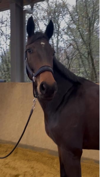 Diese bildschöne und super ehrliche Hannoveranerstute sucht ein neues 5 - Sterne-Zuhause. Geburtsjahr: 2021 Größe: 174cm Sie ist eine bildschöne, typvolle Hannoveranerstute, die mit ihrem Erscheinungsbild und ihrem makellosen Charakter sofort begeistert. Sie zeigt sich sowohl im täglichen Umgang als auch unter dem Sattel absolut unkompliziert, brav und verlässlich. Diese liebevolle Stute ist dem Menschen sehr zugewandt und genießt jede Form der Aufmerksamkeit. Besonders beim ausgiebigen Putzen und den dazugehörigen Kuscheleinheiten blüht sie richtig auf. Madonna ist stets freundlich, höflich und macht es einem leicht, sie einfach gernzuhaben. Auch bei der täglichen Arbeit kann sich durch ihre tolle Arbeitseinstellung überzeugen und macht einfach Spaß. In der Dressurarbeit befindet sie sich auf solidem A -Niveau und wurde auch bereits auch schon erfolgreich auf Turnier vorgestellt. Auch Stangenarbeit/Cavalettiarbeit macht sie sehr gerne und zeigt sich dabei stets brav und völlig unbeeindruckt. Das Springen wurde allerdings bisher nicht gefördert. Sie ist einfach für jeden Spaß zuhaben, immer motiviert Neues zu lernen und möchte dem Reiter einfach jederzeit gefallen. Egal ob im der Halle, auf dem Platz oder in fremder Umgebung. Auch mit anderen Pferden ist völlig unkompliziert und freundlich. . Einfach ein echtes Traumpferd, das sowohl für ambitionierte Reiter als auch für Freizeitreiter interessant ist. Sie bietet beste Voraussetzungen, um gemeinsam weiterzulernen, zu wachsen und dabei ganz viel Freude zu haben.