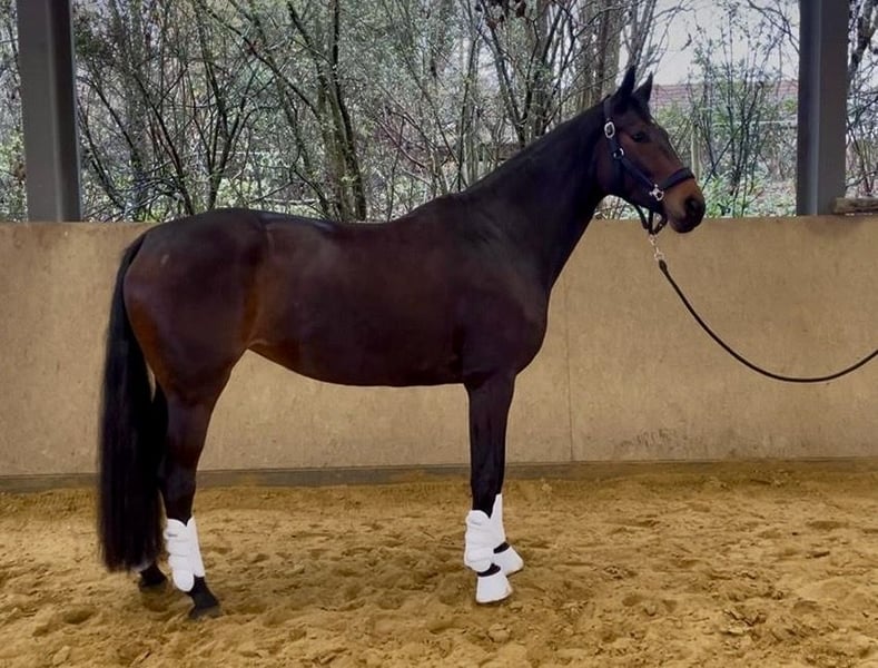 This stunning and incredibly honest Hanoverian mare is looking for a new five-star home. Year of birth: 2021 Height: 174 cm She is a beautiful, typey Hanoverian mare that immediately captivates with her appearance and impeccable character. She is very straightforward, well-behaved, and reliable both in daily handling and under saddle. This affectionate mare is very attentive to humans and enjoys all forms of attention. She truly blossoms during grooming and cuddling sessions. Madonna is always friendly, polite, and makes it easy to simply love her. Even in daily training, she impresses with her excellent work attitude, making riding a real pleasure. She is currently at an solid elementary level in dressage and has already been successfully presented at competitions. She also enjoys pole work and cavaletti exercises, always showing herself to be well-behaved and completely unfazed. However, jumping has not been specifically trained so far. She is a horse that is always eager to participate, motivated to learn new things, and simply wants to please her rider at all times—whether in the indoor arena, on the riding field, or in unfamiliar surroundings. She is also very easy and friendly when it comes to interactions with other horses. An absolute dream horse suitable for both ambitious riders and leisure riders. She offers excellent potential for further learning, growth, and lots of joy together.