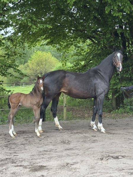 Te koop staat onze prachtige 5-jarige fokmerrie van Christ x Locksley II x Rotspon, drachtig voor 2026 van de huidige topvererver Secret, vanwege een verkleining van de fokkerij. Coeur is ingeschreven in het Hannoveraans hoofdstamboek en is nog niet aangezad. In 2024 en 2025 heeft ze al zeer mooie veulens gebaard van Sebastino PS en Viva Romance PS (elk 4x wit; uitstekende bewegingskwaliteit). De volle broer van Coeur heeft een S-plaatsing, net als een halfzus van Floriscount, evenals verschillende andere succesvolle nakomelingen uit Coeur’s moeder Lisboa.