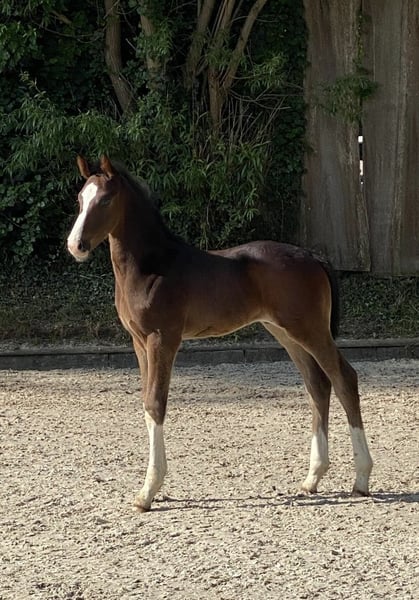 Con un gran tipo y dotado de buena genética, nuestro potro semental de Viva Romance PS, de una madre Christ x Locksley II x Rotspon, está a la venta. El hermano completo y los hermanos de la madre han tenido éxito hasta la clase S. Su tipo y apariencia son algo muy especial, simplemente como pintado. Además, es muy curioso y confiado. Un pequeño rompecorazones que seguramente conquistará el cuadrilátero algún día. Su padre, Viva Romance PS de Vivino, proviene de uno de los linajes de yeguas más potentes: Su madre, El.St.Gesina, produjo la increíble cifra de 10 sementales aprobados (entre ellos, For Romance).
