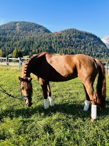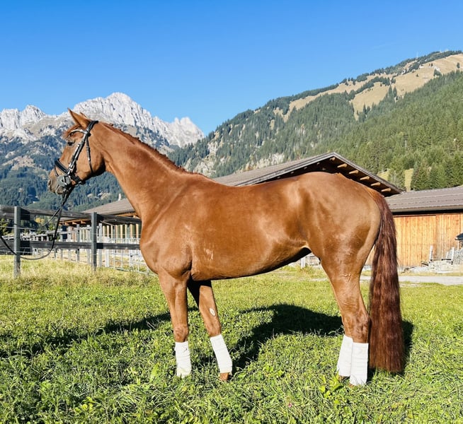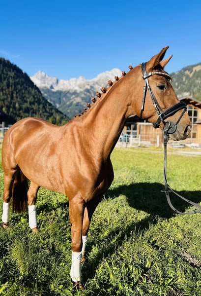 Promising Hanoverian mare with excellent temperament and wonderful character For sale is a 5-year-old Hanoverian mare with an impressive pedigree: Millennium x Florestan – a combination that combines rideability, expression, and sporting potential. This young lady impresses not only with her solid basic training and calm demeanor but also with her willingness to learn and her pleasant nature in daily handling. She is completely easy to handle, affectionate, friendly, and always attentive. Under saddle, she demonstrates enthusiasm and good impulsion, remaining controllable and cooperative at all times – an ideal foundation for her further development in dressage or upscale leisure riding. She is well-started, familiar with basic work, and ready for the next steps in her training. - 5 years old - Hanoverian mare - Millennium x Florestan - Well-behaved on the ground and under saddle - Willing to learn and performance-oriented - Already backed and prepared for further training - Suitable for ambitious riders in training and competition - Also ideal as a high-quality leisure horse Videos of riding available upon request. We wish for her a home where she can be further nurtured with patience, calmness, and joy – whether in competitive training or upscale leisure riding. We are happy to provide more information or arrange a trial ride!