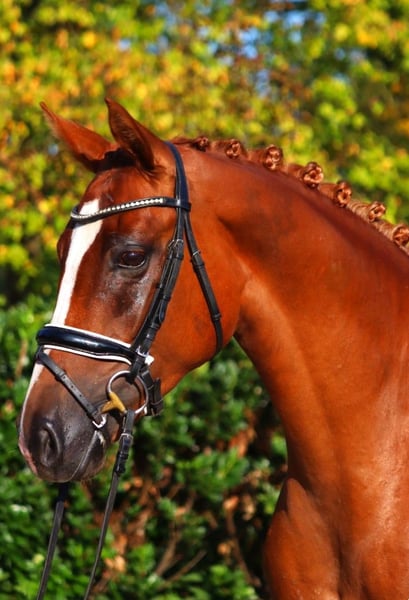 Sympathische 5 jährige Hannoveraner Prämienstute von Benicio x Fürst Romancier, mit drei sehr guten Grundgangarten. Sie ist super brav im Umgang und mit einer tollen Rittigkeit ausgestattet. Dies konnte sie anhand ihrer Stutenleistungsprüfung unter Beweis stellen, wo sie für Grundgangarten und Rittigkeit durchweg Noten von 8,0 und besser erhielt. Der Schritt wurde sogar mit einer 9,0 bedacht. Direkt vom Züchter zu verkaufen. Preis zzgl. Mwst. Anfragen nur telefonisch, E-Mails werden nicht beantwortet.