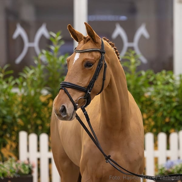 Sporterfolgreiche Parcoursheldin mit Veranlagungen für die schwere Tour. Lolita M präsentiert sich leistungsstark, mit guter Vorsicht und besten Reflexen. Sie ist zusammen mit ihrem Züchter Frido Matthies erfolgreich in Springpferdeprüfungen der Klasse A und eifert ihrer Vollschwester Lavina M nach, die mit Tommy Matthies erfolgreich in M-Springen ist. Ihre Mutter Warina weist 152 Sporterfolge auf und war vor der Zucht mit Frido und Tommy Matthies bis zur Klasse M erfolgreich. Sportname: Lolita M 4 Turniererfolge: SPF: A 2/4. 3/w. 1/5. 1/w. GWS: 1/1. 1. Generation Sportpferde Springen: Lavina M v. Lex Lugar (SPR: 1,30 m mit Tommy Matthies). 2. Generation Sportpferde Springen: Ferdinand 273 v. For Edition (SPR: 1,50 m mit Werner Dittmer); Warina/Warina 122 v. Witbooi (SPR: 1,35 m mit Frido Matthies). Aufbauprüfungen Springen: Lilly/Lilli M 4 v. Lord Pezi (SPR: 1,30 m mit Johan Kachelhoffer). 3. Generation Sportpferde Dressur: Destana 8 v. Destano (DRE: S* mit Stefanie Munstermann-Zurhorst,FoVA 2014); StPr Fine Step v. Full Speed (DRE: M** mit Frauke Dorothea Voß,SPR: 1,35 m mit Johanna Kreutz). Sportpferde Springen: Arcus 29 v. Alboretto (SPR: 1,45 m mit Michael LISCHER); Full Feeling v. Full Speed (SPR: 1,40 m mit Birgit Wolters); StPr Fine Step v. Full Speed (DRE: M** mit Frauke Dorothea Voß,SPR: 1,35 m mit Johanna Kreutz); Don Dimon VE v. Don Diarado (SPR: 1,30 m mit Julia Kuschel); Sir Stradivari v. Stedinger (SPR: 1,30 m mit Fabian Meyer); Danila 11 v. Dirano (SPR: M mit Meyer,Hilmar,VA 2000). Aufbauprüfungen Dressur: Derry 17 v. Don Martillo (DRE: L); Luna Lovegood 17 v. Le Vivaldi (DRE: L); Don Djego 5 v. Destano (DRE: L); Desert Sun/Desert Sun 5 v. Desperados (DRE: L); StPr Fürstin Dorothee v. Fürst Heinrich (DRE: L,SPR: L); Reinhard's Liebste/Reinhards Liebste v. Regazzoni (DRE: L). Aufbauprüfungen Springen: Royal Feeling 2 v. Ramiro's Son II (SPR: L); StPr Fürstin Dorothee v. Fürst Heinrich (DRE: L,SPR: L); Fou Fighter D v. Full Speed (SPR: L,VA 2001). Aufbauprüfungen Gelände: Crimson Reef v. Chiron (Gelände: L,FoVA 2015). Auktionspferde: HannPr Despina/Despina 52 v. Destano (VA 2016: 50.000 €); Certenly pefect/Certainly Perfect v. Carlucci (FoVA 2011); Daylight/Diorissima v. Del Piero (VA 2005); Good Girl v. Graf Lehndorff (FoVA 1991). 4. Generation Sportpferde Springen: Duffy 4 v. Don Carlos (SPR: S mit Franz,Reiner); Dufte Biene/DYNASTIE 21 v. Dynamo (SPR: S mit MATTHIES,FRIDO). 5. Generation Sportpferde Dressur: Wirbelwind 131 v. Weltmeyer (DRE: S*** mit Jonny Hilberath); Wallstreet 48 v. Westwall (DRE: S* mit Heinrich Damian Brähler); His Highness Haribo v. His Highness (DRE: M* mit Soraya Schießl-Maier); Solist 144 v. San Remo (DRE: M* mit Anke Dieckell); Fürst Ferdi v. Fürst Heinrich (DRE: M* mit Bettina Haug,VA 2007); Wespucci 7 v. Walt Disney I (DRE: M* mit Stephanie Lührs); Warlon v. Walt Disney I (DRE: M* mit Andrea Eichenauer); LADINO 10 v. Lachs (DRE: M mit PROTZER,ULRIKE); La Bamba/LA BAMBA 5 v. Lachs (DRE: M mit RETTENMAIER,BARBARA 1388). Sportpferde Springen: Radjana/Radjana 7 v. Ravallo (SPR: M mit Sauer,Jutta,VA 1998); Libero 88 v. Lemon (SPR: M mit Petter,Oliver); ARGENTINIO v. Argentan (SPR: M mit DEDDEN,GEORG); SIX 1 v. Seeadler (SPR: M mit WINTER,GERHARD). Aufbauprüfungen Dressur: Brilliant 37 v. Boehmer's As (DRE: M mit Martina Böhmer); HannPrA Maleficent/Maleficent 5 v. Millennium (DRE: L); gek. Hengst Balmain/Balmain 6 v. Borsalino (DRE: L,Schlieckau 2020); Wallstreet 37 v. Westwall (DRE: L). Aufbauprüfungen Springen: Spiky 19 v. Stolzenberg (SPR: L); Highlander 79 v. Hohenstein (SPR: L); Tower 5 v. Tannenberg (SPR: L); Tessa/Tessa 43 v. Tannenberg (SPR: L); Terra/Terra 10 v. Tannenberg (SPR: L). gekörte Hengste: gek. Hengst Sovereign Hit v. Sandro Hit (USA 2008). Auktionspferde: World Around v. Worldly (VA 2008); Westend 26 v. Westwall (VA 2007); StPr Hanoi v. Hohenstein (VA 2003); Del Amika/Dark Wonder v. Donnerhall (FoVA 1999); Lendl/v.Lemon xx v. Lemon (HM 1993); Lili Marlen v. Lemon (VA 1984). Bes. Prämientöchter: HannPrA Fantastica/Fantastica 60 v. Floriscount; HannPr Florida/Florida 161 v. Floriscount; HannPr Diana v. Dancier; StPr His Hellen v. His Highness; StPr Fiesta/Fiesta 113 v. Florianus; StPr Wichita M/Wanessa M v. Weltmeyer; StPr Windspiel v. Walt Disney I; StPr Bonita/Bonita 79 v. Baryshnikov; StPr Libra/Libra 3 v. Lemon; StPr L'amie v. Lemon; StPr Logik/Logik 9 v. Lemon; StPr Dubarry/DUBARRY 13 v. Darling; StPr Amare v. Avus (Ratje Niebuhr-Schau Verden 1985); StPr Argentella v. Argentan. Mutter: Warina ZL: 3/3 Turniererfolge: SPR: M 3/1. 5/2. 1/3. 2/4. 2/5. 7/w. SPF: M 1/3. SPR: L 23/1. 6/2. 8/3. 7/4. 4/5. 8/w. SPF: L 1/2. 1/3. 1/4. 2/5. 4/w. SPR: A 18/1. 10/2. 8/3. 8/4. 3/5. 4/w. SPF: A 2/1. 4/2. 1/3. 3/4. 5/w. Großmutter: Dina ZL: 9/8 ZSP: Feldprüfung Reitpferd - Trab 6,00 Galopp 6,00 Schritt 7,00 / Durchschnitt Rittigkeit 7,00 / Durchschnitt Springen 9,00 Das Pferd ist ein Verdener Auktionspferd und wird am 25.01.2026 online versteigert. Vom 12.01. bis zum 25.01. kann das Pferd jeden Tag beim öffentlichen Training besichtigt und ausprobiert werden. Das Startgebot bei der Versteigerung ist 8.000 Euro.