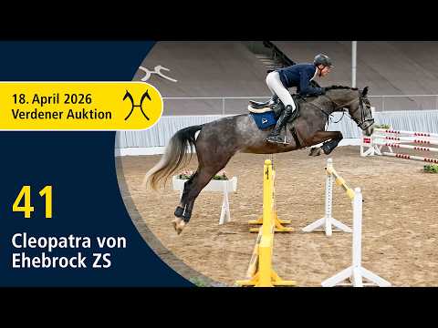 Das Pferd ist ein Verdener Auktionspferd und wird am 18.04.2026 onlive versteigert. Vom 6.04. bis zum 18.04. kann das Pferd jeden Tag beim öffentlichen Training besichtigt und ausprobiert werden. Das Startgebot bei der Versteigerung ist 8.000 Euro. Cleopatra von Ehebrock ZS ist altersgemäß ausgebildet und überzeugt mit einer hochinteressanten Blutführung. Für die Turniersaison 2026 setzen wir große Erwartungen in sie. Mit Bernd Hinck gewann sie bereits zwei Gewöhnungs-Springprüfungen. Ihre Vollschwester Coco L’amour wurde über die Elite-Auktion 2024 nach Italien verkauft. Aus der Mutterlinie stammt zudem der gekörte Hengst Cornet Fever (1,35 m mit Gerd Könemann). Sportname: Cleopatra von Ehebrock ZS Sporterfolge: GWS: 2/1. Leistungsprüfung: Feldprüfung Reitpferd - Trab 6,00 Galopp 6,50 Schritt 7,00 / Durchschnitt Rittigkeit 7,25 / Durchschnitt Springen 8,50 Zuchtname: Cleopatra von Ehebrock ZS 1. Generation Auktionspferde: Vet+ Cordula/Coco L'amour v. Clinton's Heart (VA 2024). 2. Generation Aufbauprüfungen Springen: Gran Glenn v. Granturo (SPR: 1,30 m mit Tom Schewe,VA 2018). Auktionspferde: Guns N´Roses v. Gentleman (VA 2019). Bes. Prämientöchter: HannPr Leni v. Light My Fire; HannPr Fantasia v. Foxattac. 3. Generation Auktionspferde: Evita v. Escudo II (FoVA 1999); Elcantara v. Escudo II (FoVA 1998). 4. Generation Sportpferde Springen: gek. Hengst Cornet Fever v. Cornet Obolensky (Windows v.h.Costersv.) (SPR: 1,35 m mit Gerd Könemann,Spezialspringpferdeprfg. Kl.M m.2 Uml.Bundeschampionat 5 jährige 2008,MS-Handorf 2005); Damey's Gruess v. Grand Ferdinand II (SPR: S mit Stieghahn,Rouven,FoVA 1987); Grandprix v. Grand Ferdinand II (SPR: S mit Teichmann,Eike); Fitzcaraldo 2 v. Fernal (SPR: S mit Beutler,Kerstin); Avenida 11 v. Athletico (SPR: M mit Felix Stüvel). Aufbauprüfungen Dressur: Walk the Line 7 v. Weltregent H (DRE: L,SPR: L,FoVA 2005); Rosenstolz 42 v. Romancero H (DRE: L). Aufbauprüfungen Springen: Walk the Line 7 v. Weltregent H (DRE: L,SPR: L,FoVA 2005); Gambrinus W. v. Grand Ferdinand II (SPR: L); Granny Smith/Granny Smith 5 v. Grand Ferdinand II (SPR: L). Auktionspferde: Gentleman 151 v. Grand Cru (FoVA 1997); German's Boy v. Grand Ferdinand II (FoVA 1992). 5. Generation Sportpferde Springen: Gaby 28 v. Gralsritter (SPR: S mit JUNG,HARTWIG); Garantie/Garantie 46 v. Grand Ferdinand II (SPR: M mit Tresckow,Henning von). Mutter: Fantasia Prämierung: 2xIa. ZL: 3/2 ZSP: Feldprüfung Reitpferd - Trab 6,00 Galopp 7,00 Schritt 7,00 / Durchschnitt Rittigkeit 7,00 / Durchschnitt Springen 7,75 Großmutter: Eloise Prämierung: 1xIa. ZL: 11/8