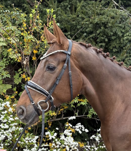 Fleur de Barcelona wurde letztes Jahr im Frühling beim Züchter angeritten und ging danach in einen Betrieb zwecks Vorstellung zur Stutenleistungsprüfung. Diese hat sie auch mit Bravour abgelegt. Danach sollte sie in Dressurpferde A vorgestellt werden, was aber wegen dann auftretenden Rittigkeitsproblemen nicht möglich war. Daher wird sie jetzt in erfahrene Hände als Problempferd verkauft. Röntgenbildern von Beinen, Rücken und Hals liegen vor. Alles weitere gerne telefonisch unter 015140434875